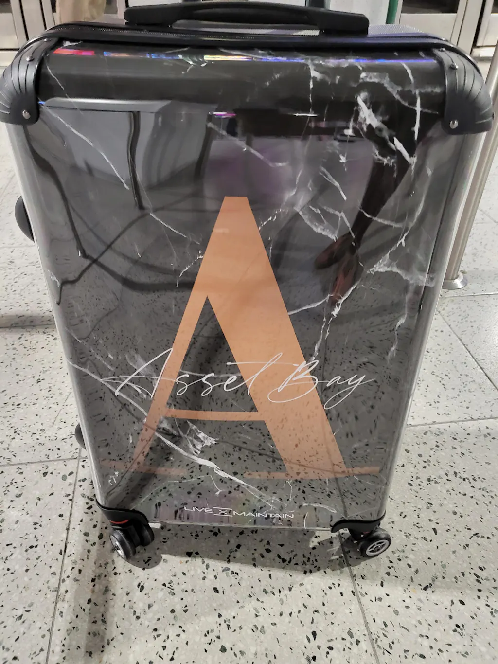 However, the looks any the airport with my company brand on the front. Hopefully its turns up as it was a real head turner (marble affect with AssetBay in italic across a big A) if not, I’ll just have to buy another one.